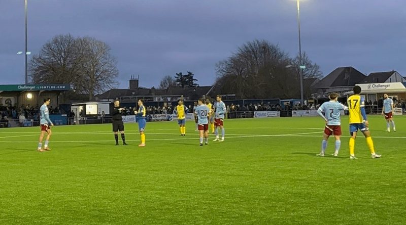Although Jack Rice placed over the crossbar in the early exchanges it was Gosport who opened this scoring within six minutes through Hisham Kasimu; the striker stabbing home a corner after the initial drive was well denied. In response the visitors should have levelled on 15 minutes as Henry Blackledge made a triple save to prevent Owen Brain’s shots.